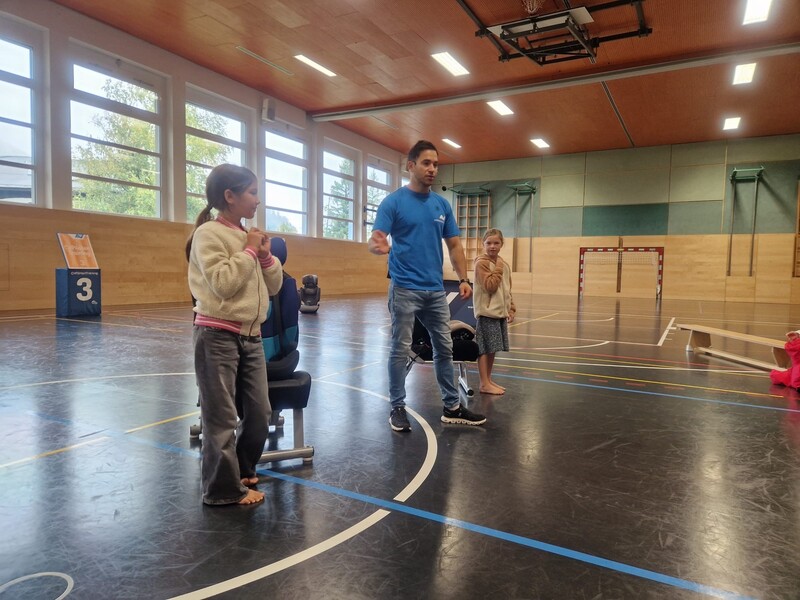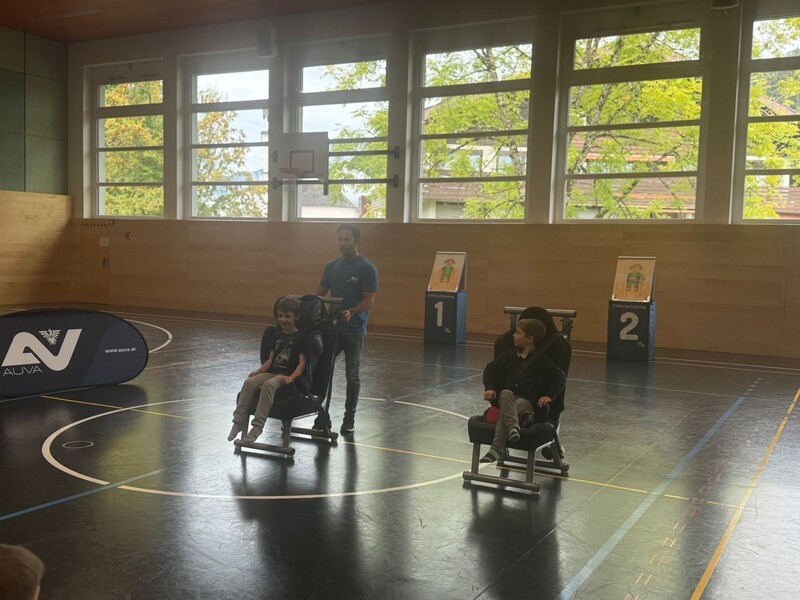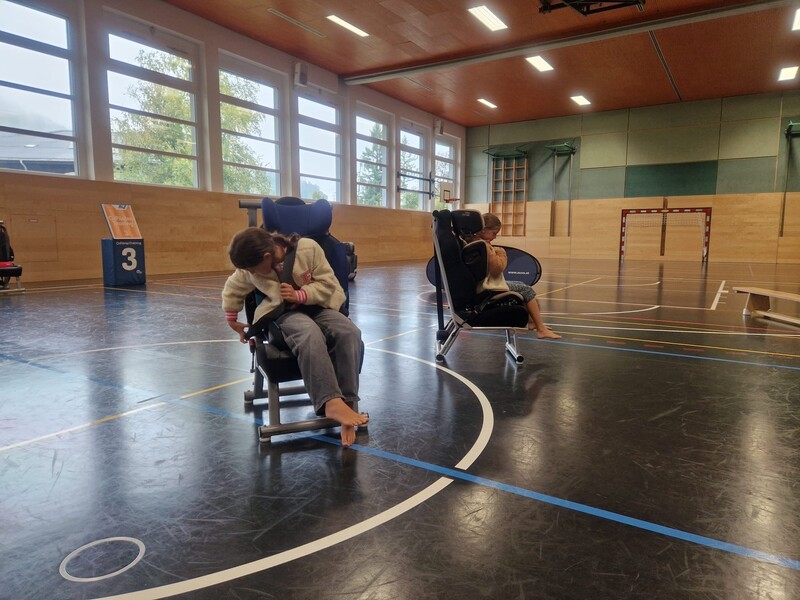 Dort haben sie gelernt, wie man sich vorsichtig im Auto verhält und wie man sich anschnallt. Zusammen haben sie das Spiel 1, 2 oder 3 gespielt und dabei einiges gelernt. Sie haben zum Beispiel gelernt, dass man schon bei 30 km/h das 17-fache Körpergewicht aushalten muss, wenn man einen Unfall baut.